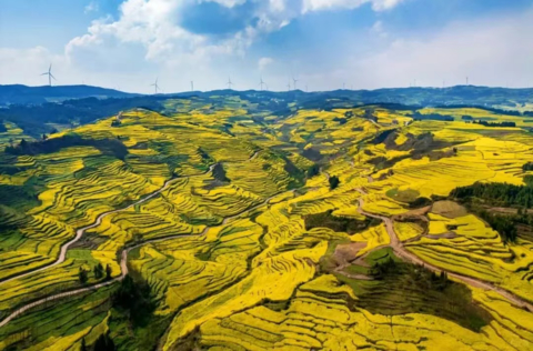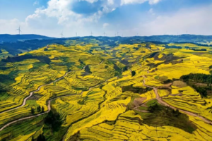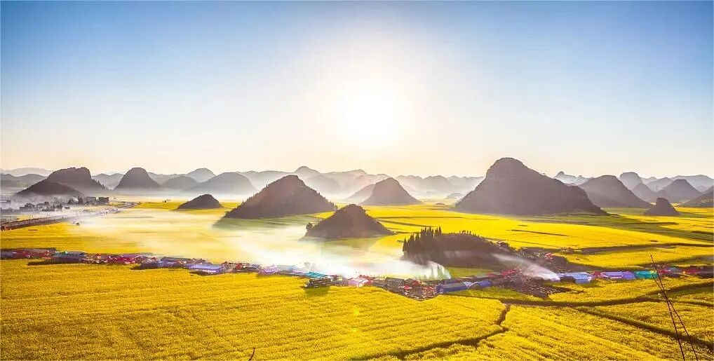 【罗平油菜花】中国最早绽放的金色春天,位于云南省曲靖市罗平县,是中国最大的油菜花观赏地之一,被誉为 "世界最大自然天成花园"(2002 年获吉尼斯世界纪录认证) 和"地球上春天最美丽的地方"(《环球人文地理》《中国国家地理》)。