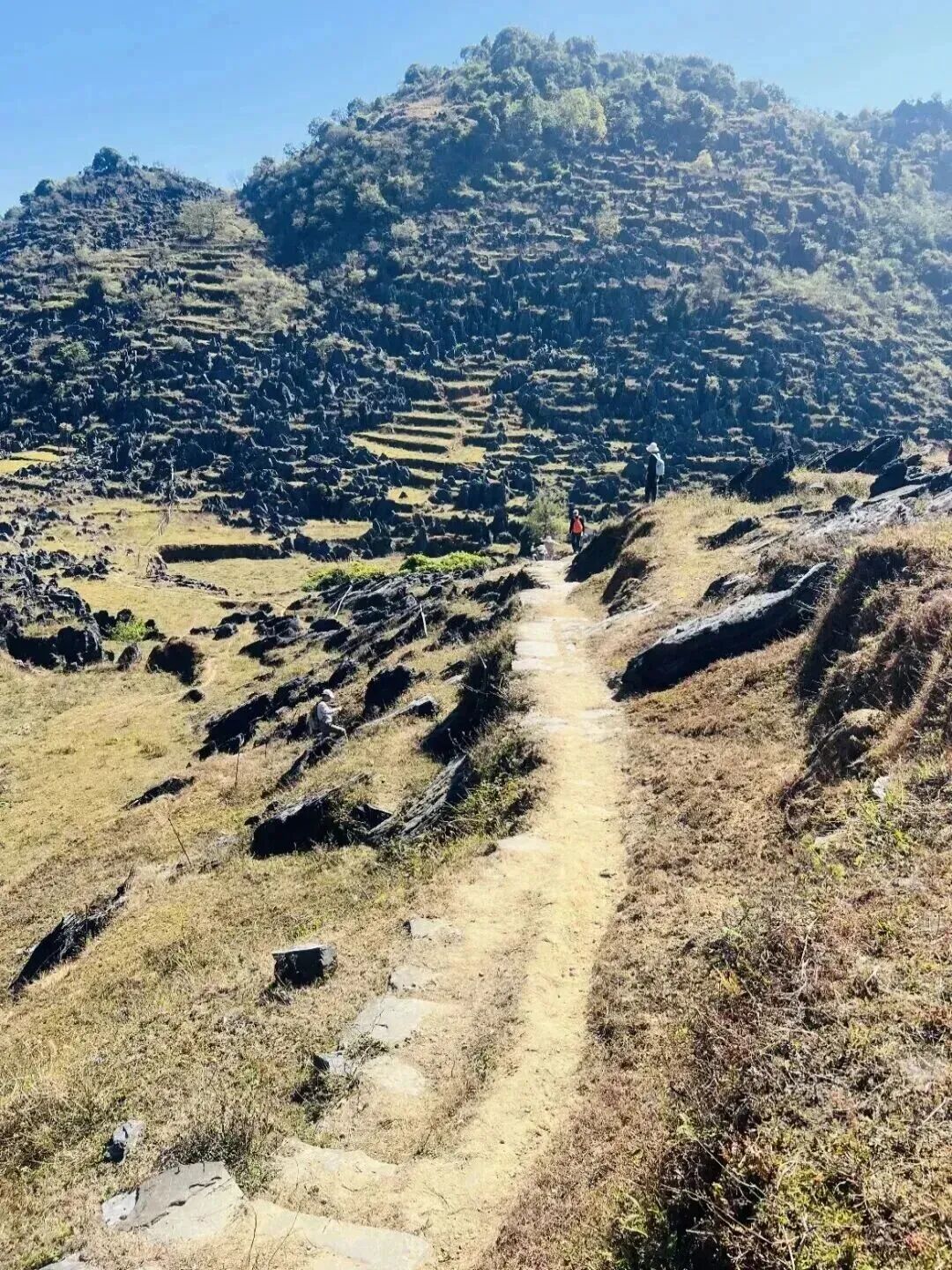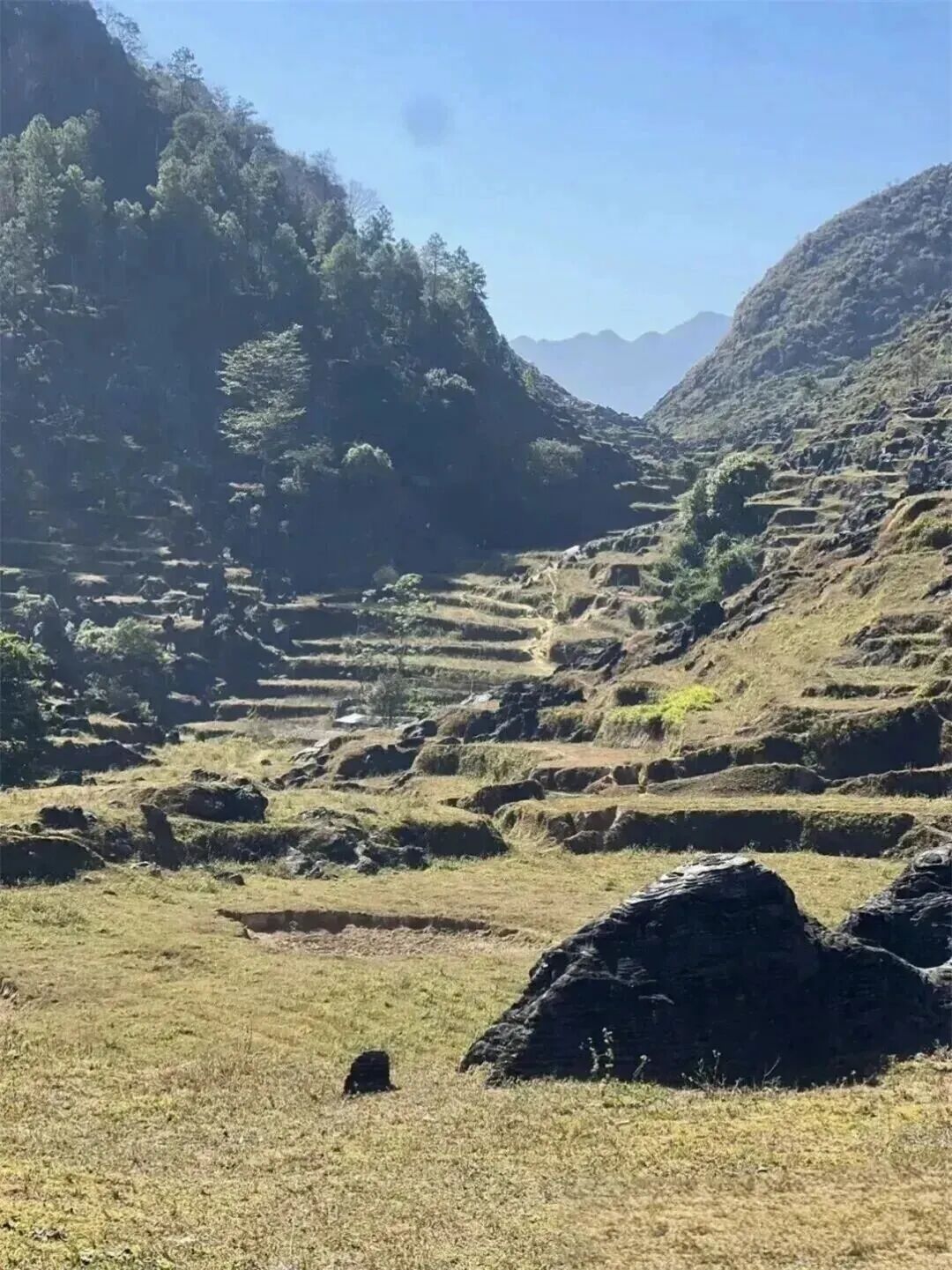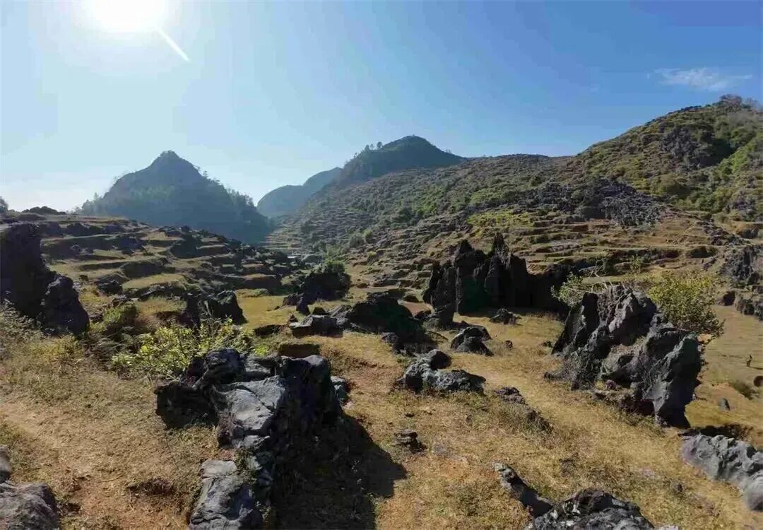 延着梅子坪古道一路前行,两旁是典型的喀斯特地貌,有着目前广东发现的最大连片阳石林。这些石林造型奇特、气势雄浑又不失俊美之态,仿佛是大自然精心雕琢的艺术品。途中,古老村落的残墙断瓦在岁月的侵蚀下虽显破旧,却透着一种历经沧桑的韵味;层层叠叠的原始梯田,宛如大地的指纹,诉说着农耕文明的古老故事;而那散落在山林间的山中人家,恰似世外桃源,为这片土地增添了几分宁静与祥和。