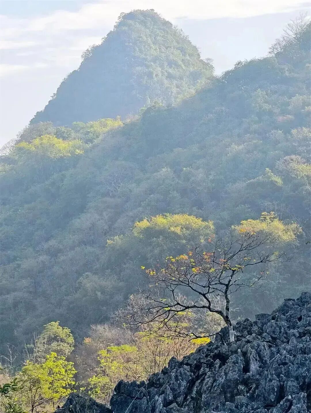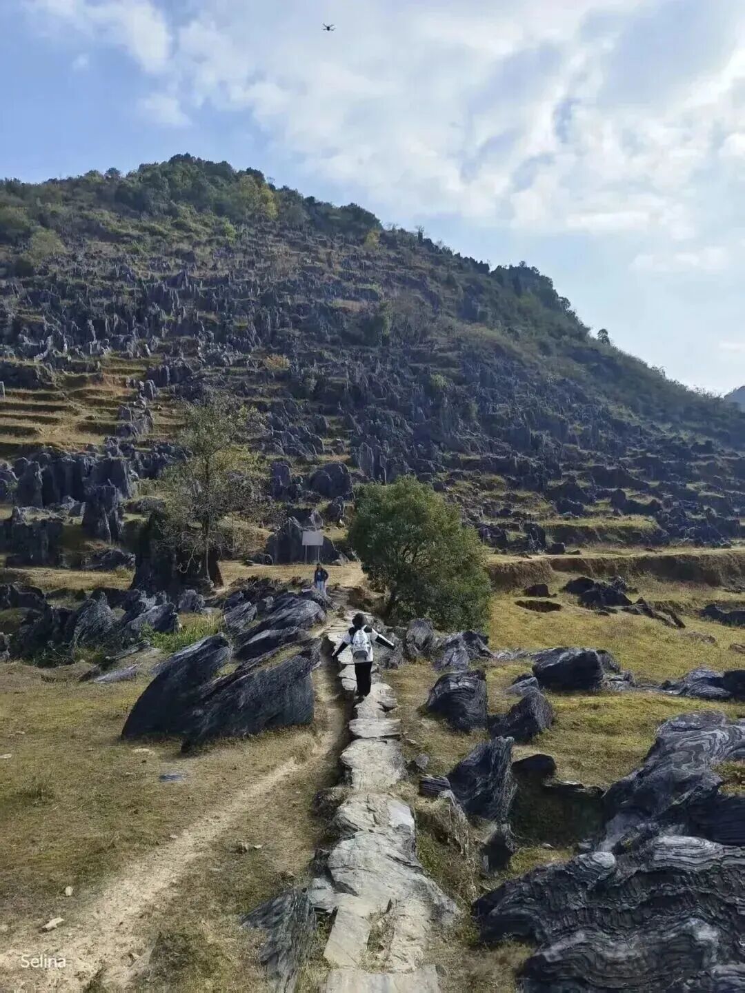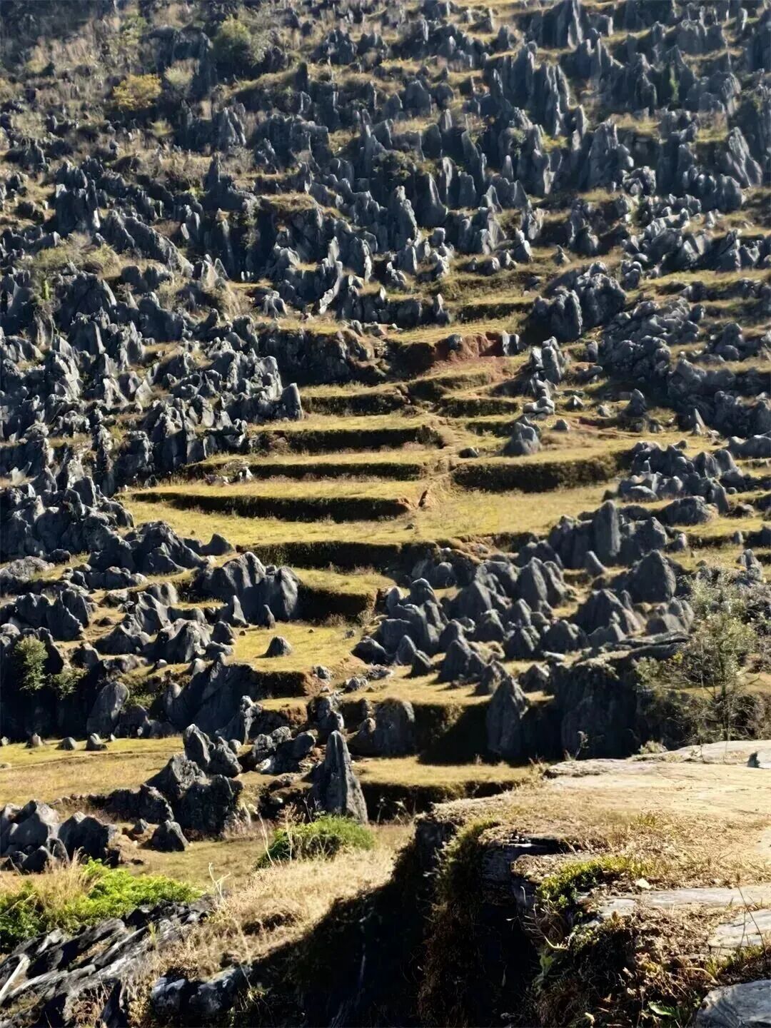 延着梅子坪古道一路前行,两旁是典型的喀斯特地貌,有着目前广东发现的最大连片阳石林。这些石林造型奇特、气势雄浑又不失俊美之态,仿佛是大自然精心雕琢的艺术品。途中,古老村落的残墙断瓦在岁月的侵蚀下虽显破旧,却透着一种历经沧桑的韵味;层层叠叠的原始梯田,宛如大地的指纹,诉说着农耕文明的古老故事;而那散落在山林间的山中人家,恰似世外桃源,为这片土地增添了几分宁静与祥和。