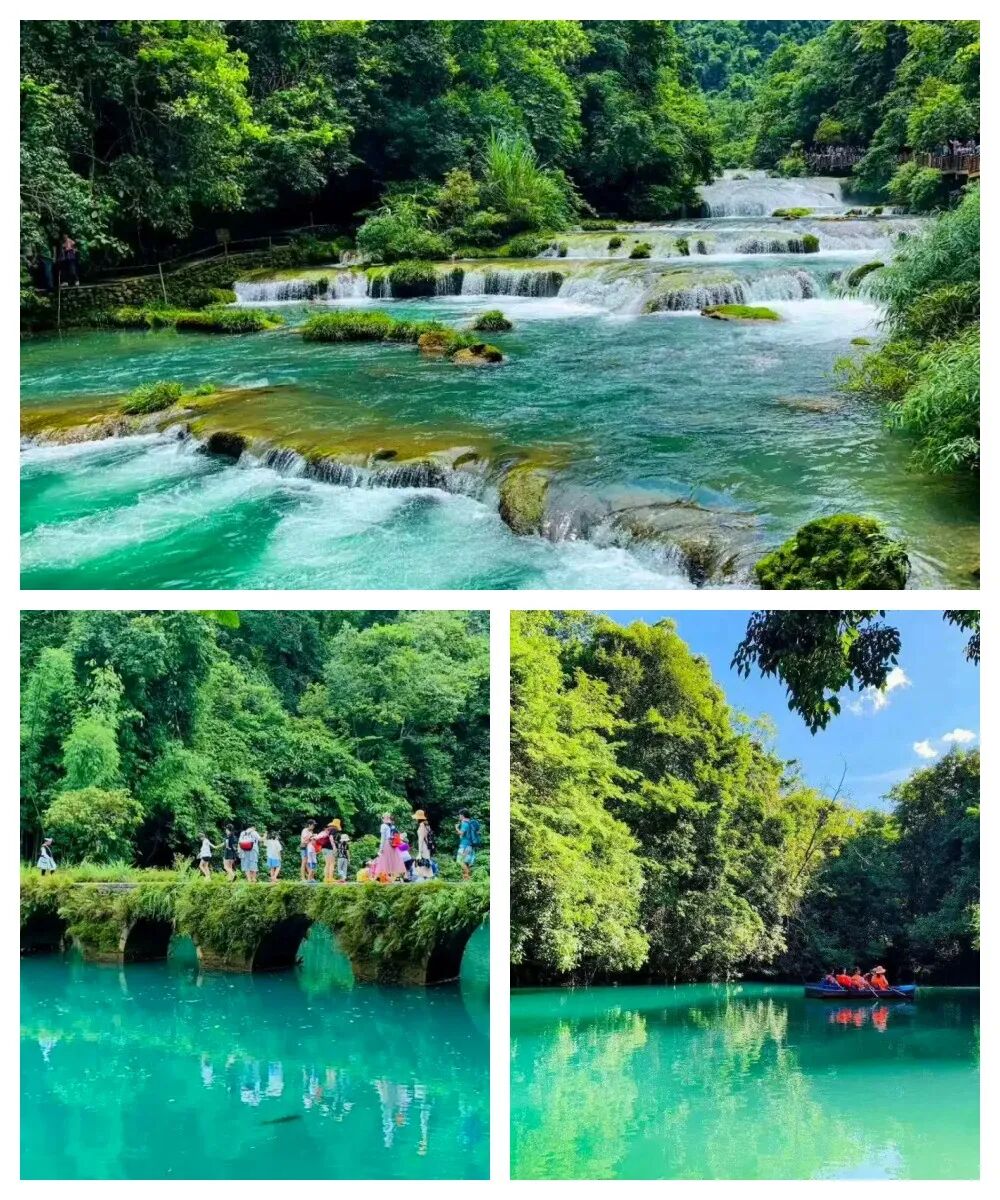 7:00早餐后乘车前往被联合国教科文组织誉为“地球上同纬度的最后一颗绿宝石”的黔南荔波(车程约4小时),中餐后乘车(10分钟)抵达国家AAAAA级风景区【小七孔】,游玩时间:不少于3小时;景点之间需换乘电瓶车(须自理电瓶车50元/人,走路无法游览)小七孔景区因一座建造于道光15年间(1836年)的小七孔石桥而得名;景区被称之为“超级盆景”,集山、水、洞、林、湖、瀑布等为一体,在长不到2公里的峡谷内,起迭着68级瀑布,顺贽而下,奔泻而去。