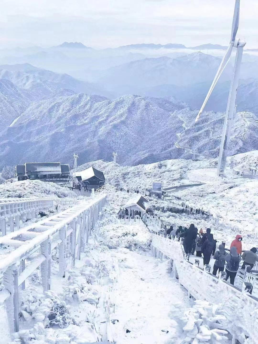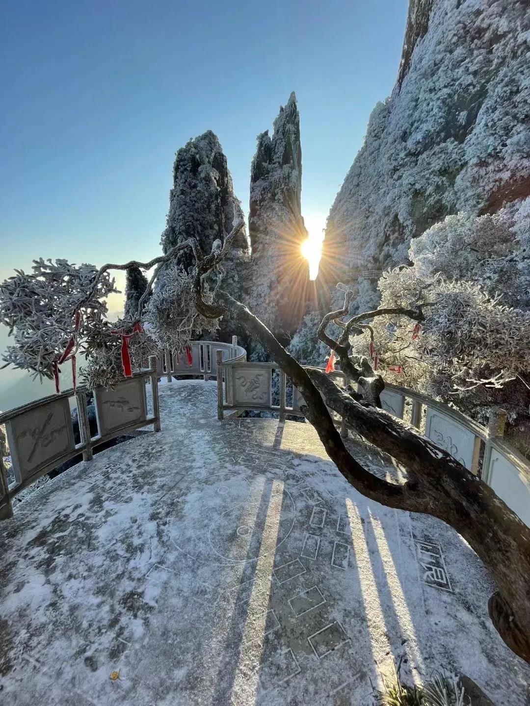 阶梯、栈道上也铺满冰霜,仿佛通往天上人间。