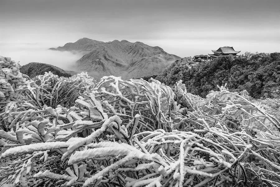 山巅之上,茫茫一片,万物银装素裹。