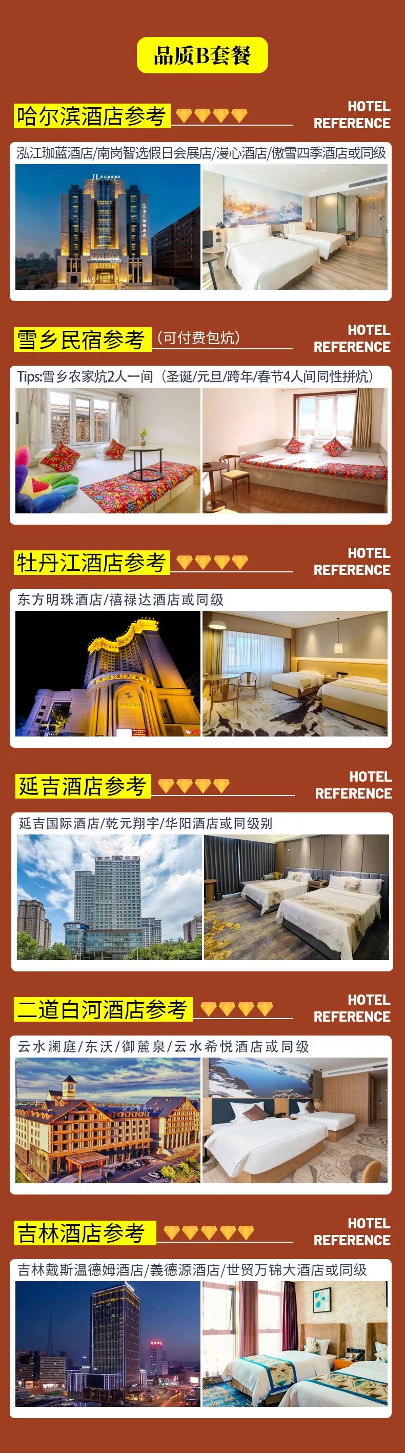 套餐住宿酒店标准不同,其他接待标准一致