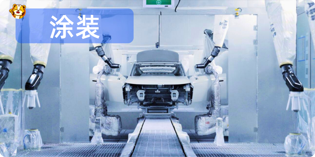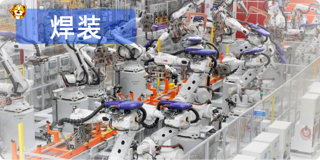 294台机器人挥舞机械臂,星火四溅,精准地完成车身焊接、涂胶。整个主线100%自动化,诺大的厂房看不到几个工人的。