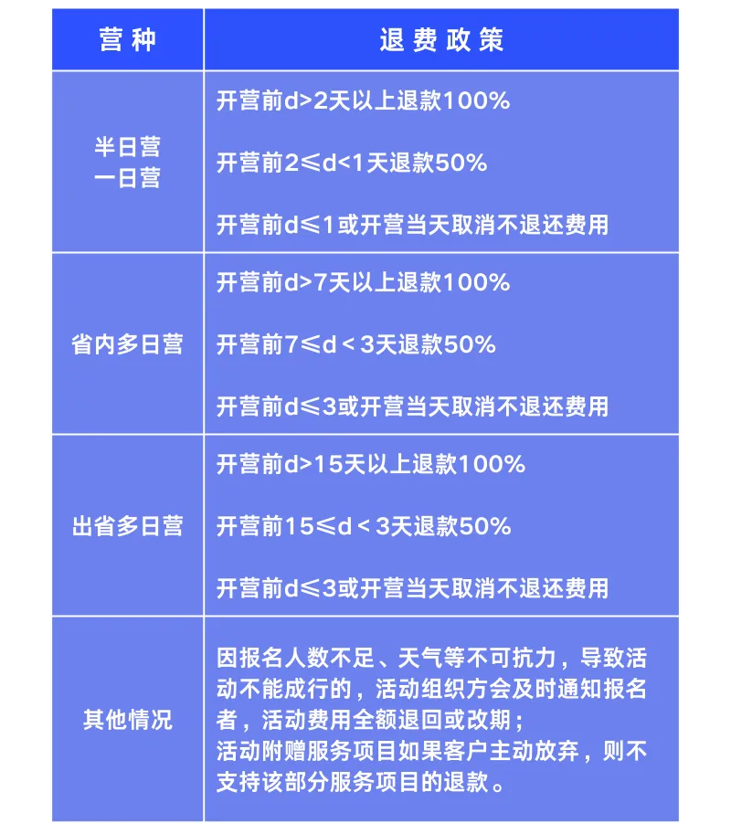 1、40人以上成行,若不成行,客服会在出发前告知,家长可选择改期或退款。
