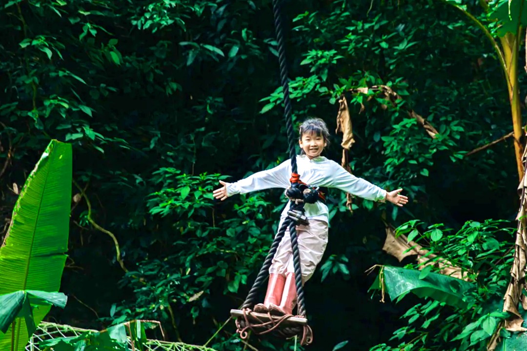 我们将化身雨林挑战者!攀爬千年绞杀榕、荡秋千、大树速降……挑战雨林高空生存技能,突破自我边界。当孩子们成功完成高空挑战时,收获的不仅是证书,更是面对困难的从容与自信