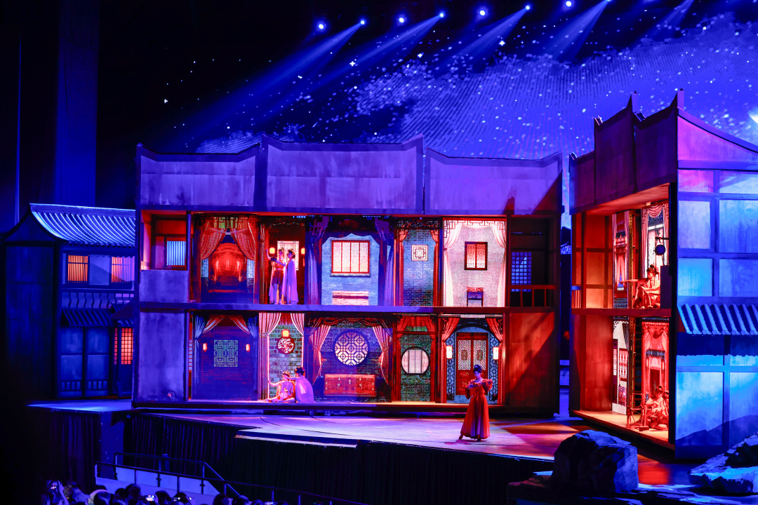 以盛唐丝路文明为魂,汇驼队、狼群、瀑布、佛光等西北元素,突破时空维度,再现千年商队穿越秦岭、横跨大漠的壮阔征程。让观众在苍狼长啸与驼铃声中,重走丝路万里征程。驼铃声响彻耳畔,丝绸之路的千年故事在360度旋转舞台上鲜活重生,东西文明在此完成一场跨越时空的对话