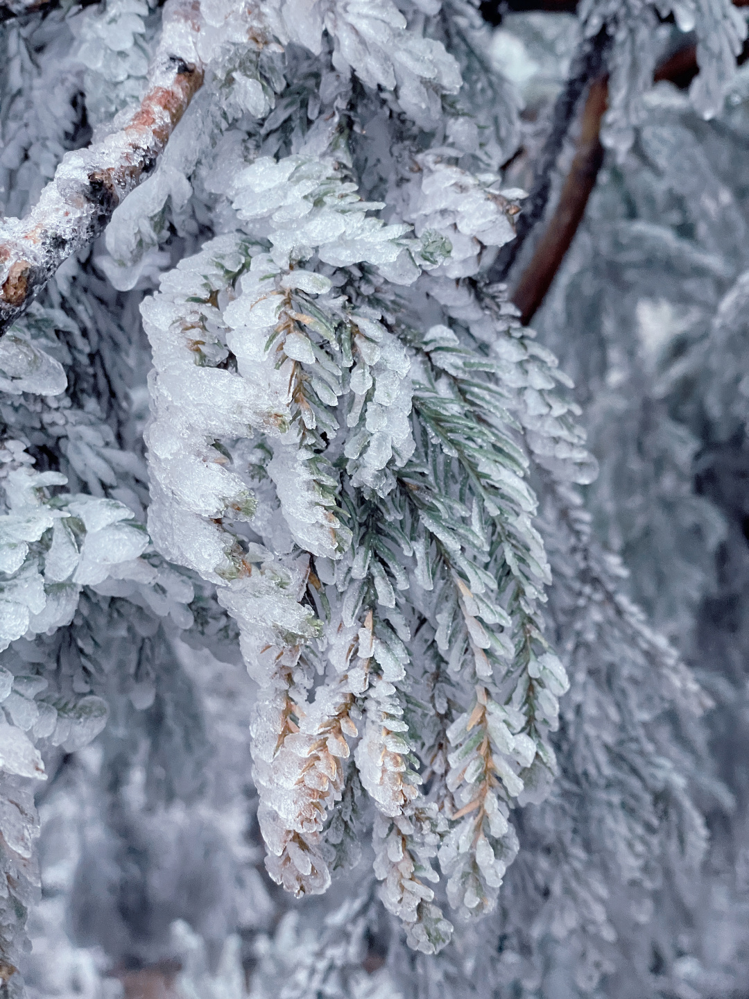 08:00 左右从祝融峰开始下山,一路游玩到南天门。沿途看晨光打在雾凇上,晶莹透亮....