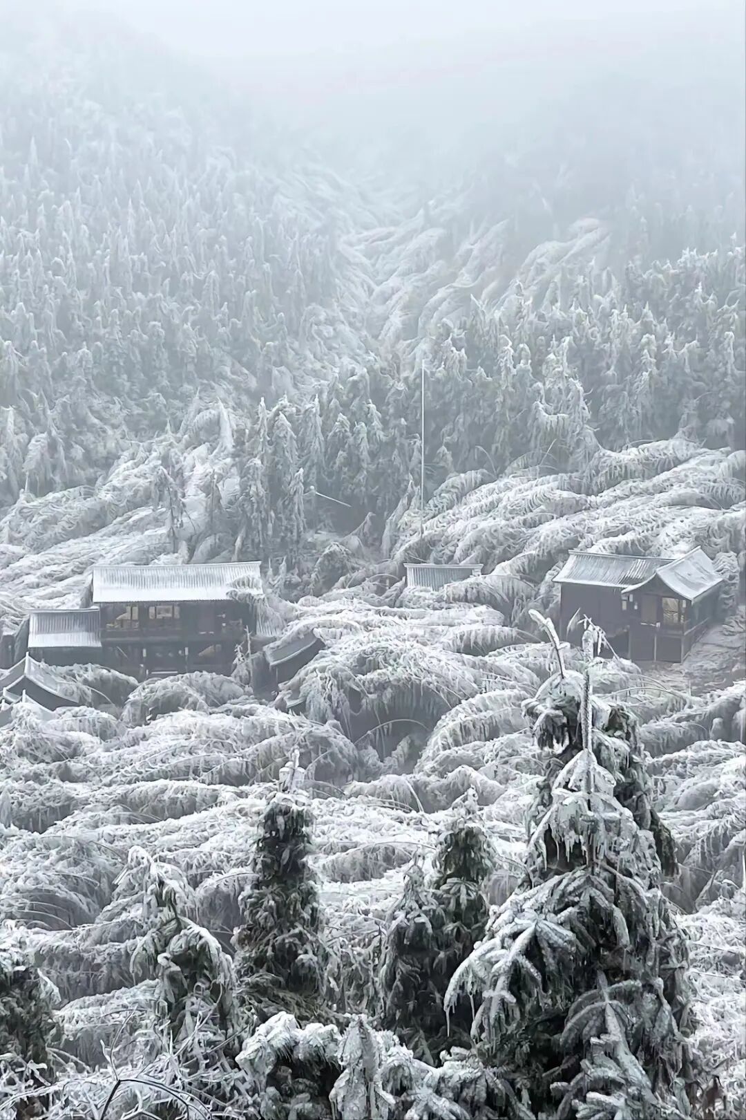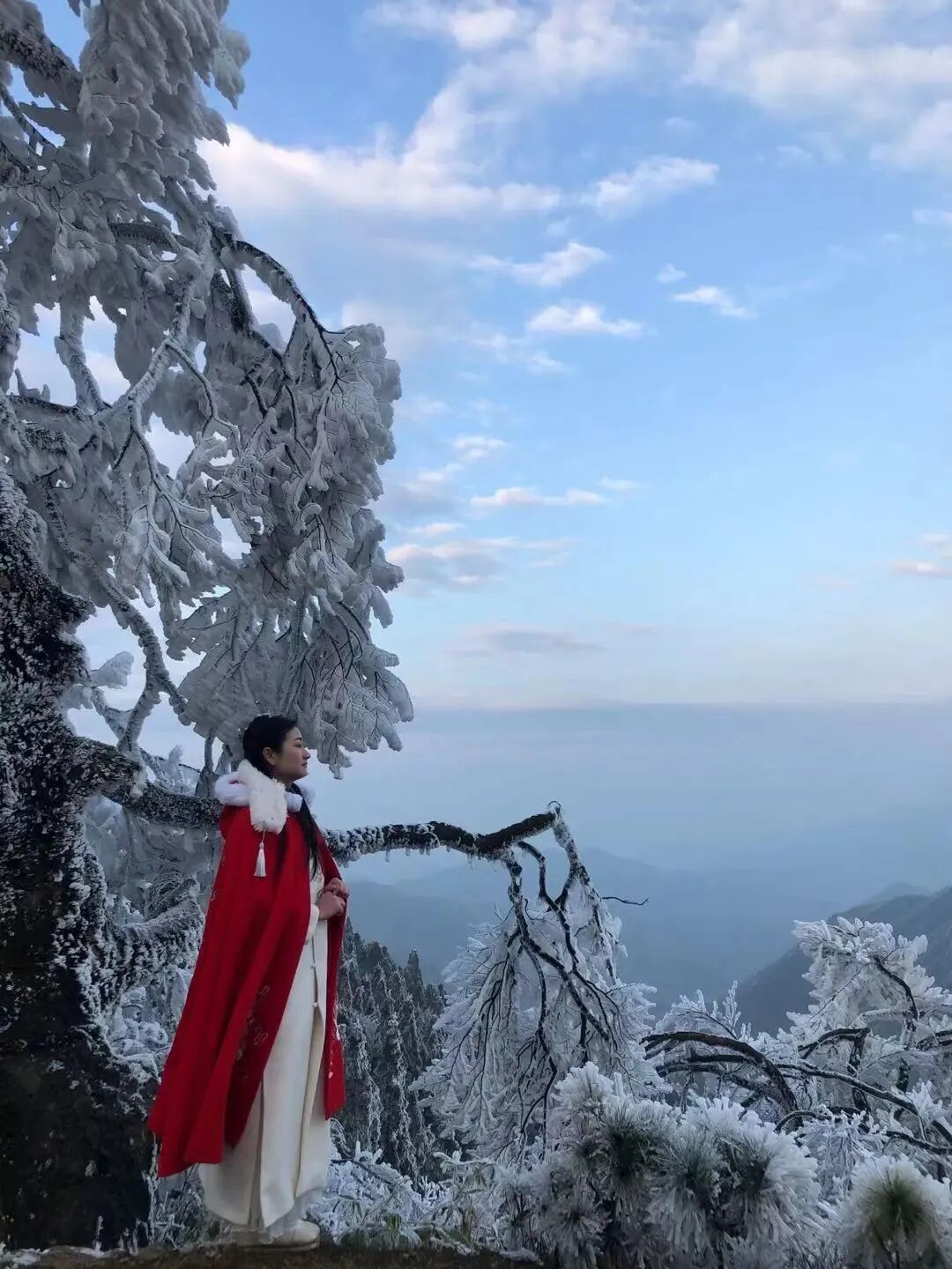 南方雪乡,云的故乡,一山四景,半山雾凇冰挂,山顶雪景云海。