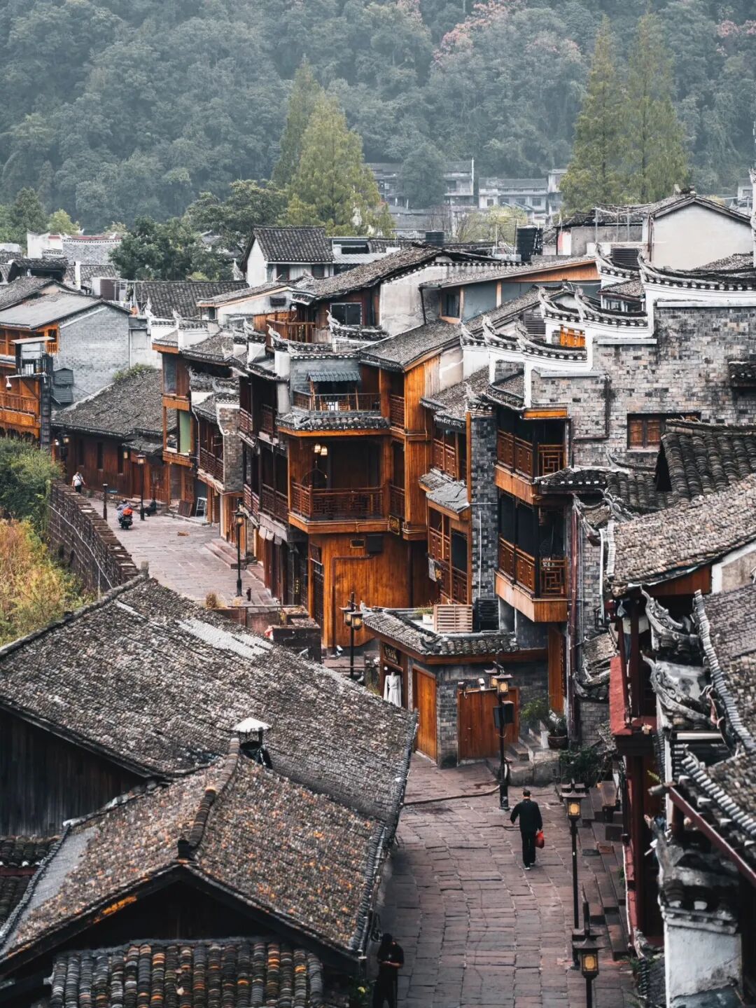 青石板路,古色古香的吊脚楼