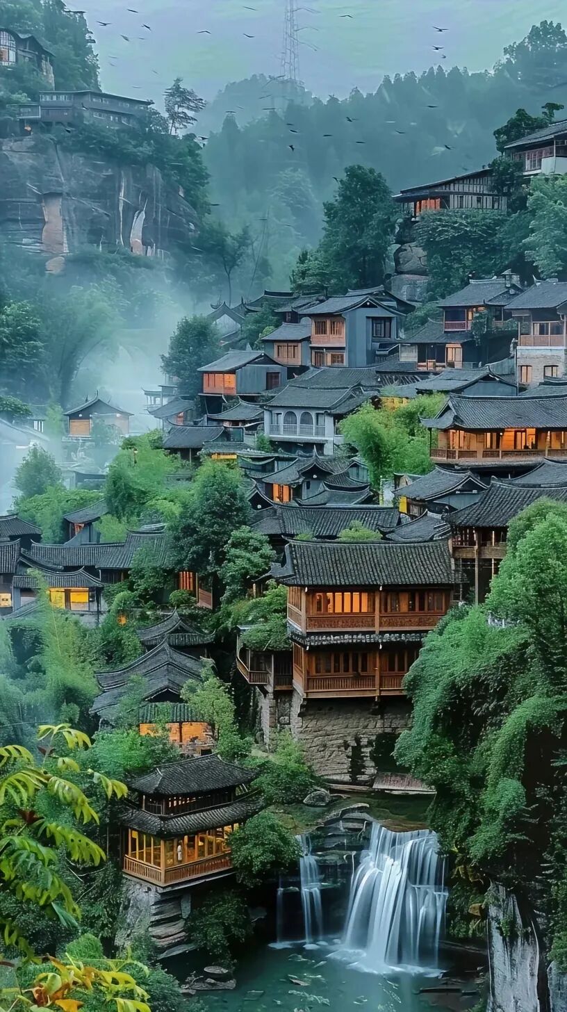 总要去趟挂在瀑布上的千年古镇