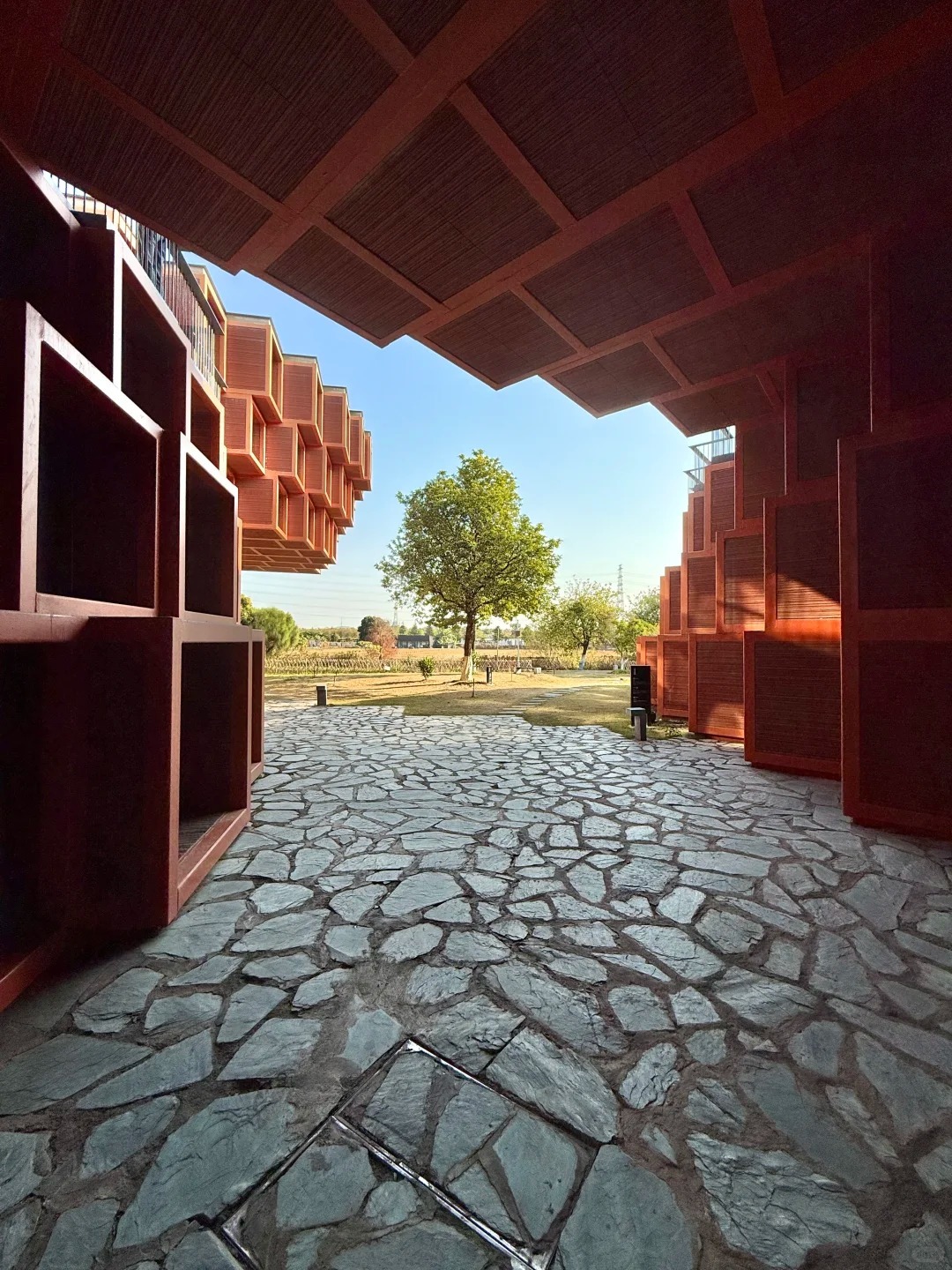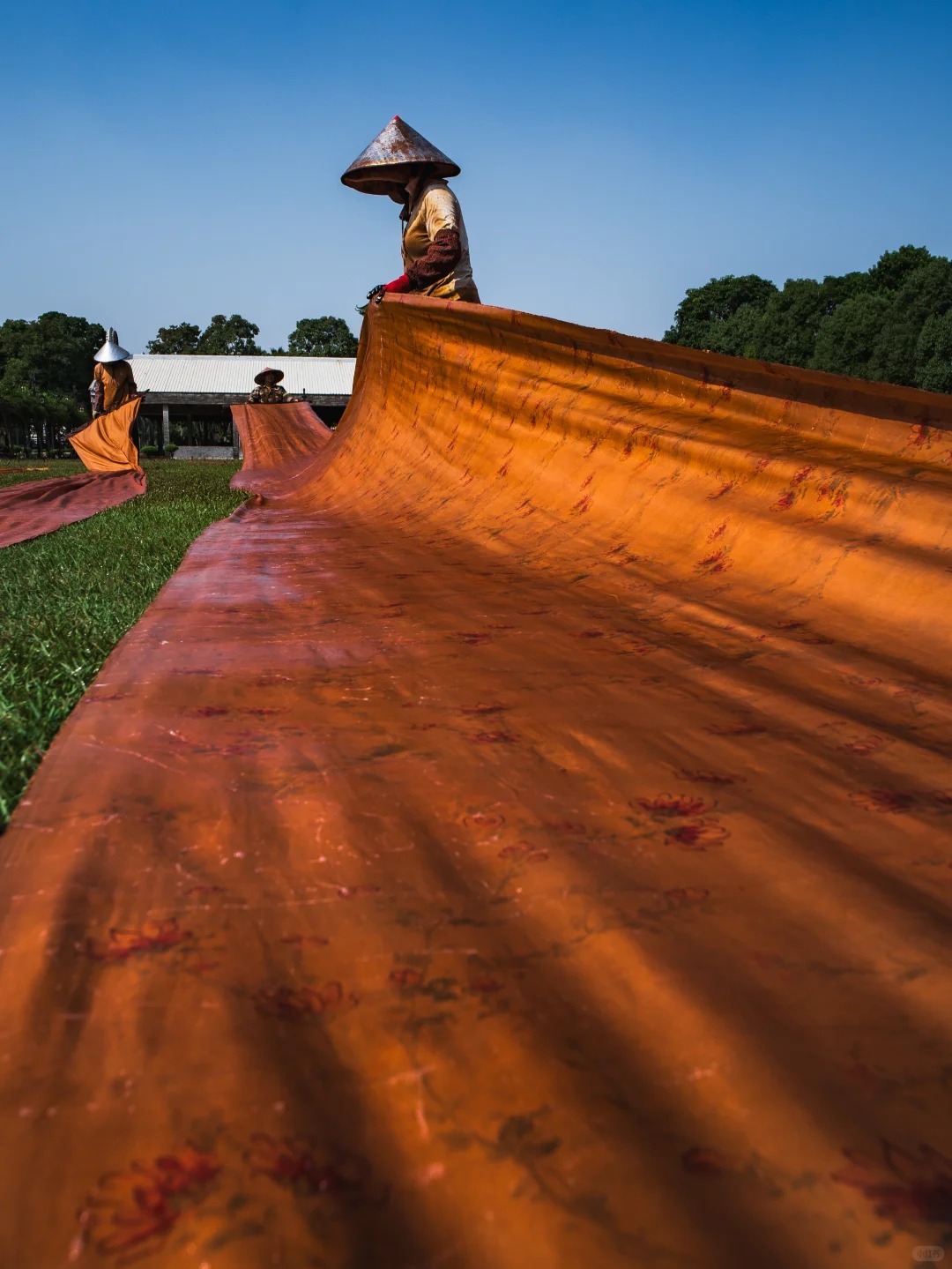 国家非遗香云纱保护基地,建筑是由英国鬼才托马斯•赫斯维克于2019年所创作,灵感来自被切开的薯莨果,据说花了800W。 常设展览介绍了香云纱的由来、制作过程、莨绸面料,以及可持续时尚品牌TANGY