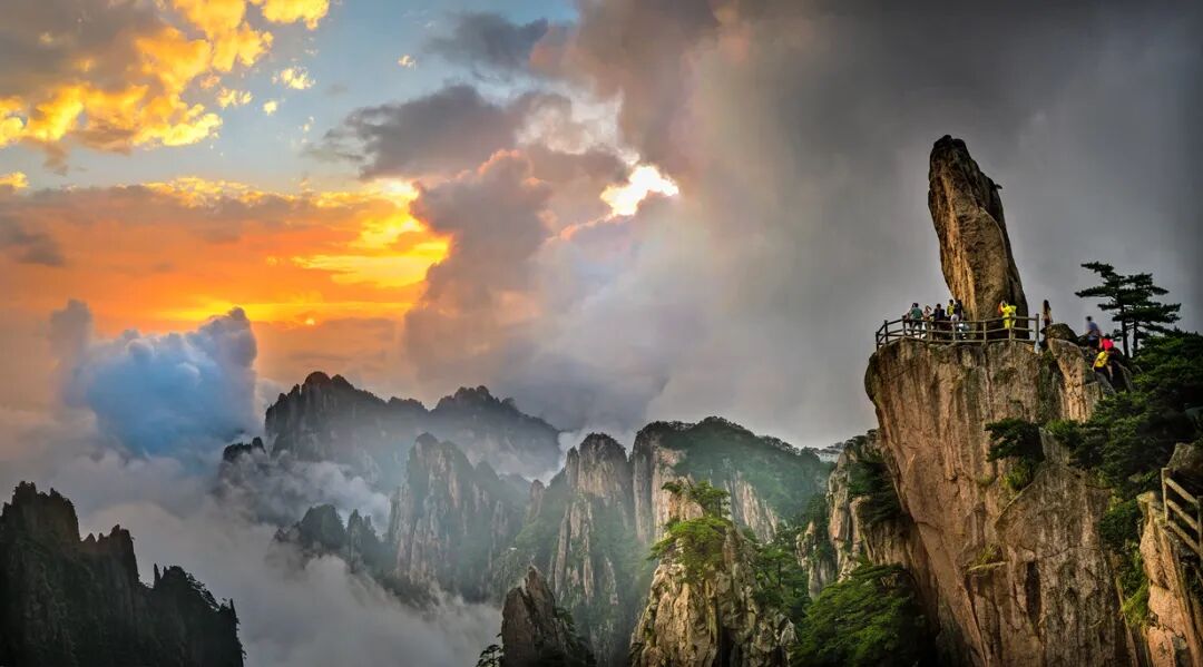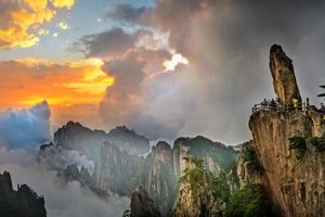 在黄山,有一种绝景,那就是日出和日落时伴跟着云海的呈现,被称作“霞海”或“霞铺云”——或凝重或翻腾或缥缈的云海在霞光的映衬下,霞光万道,照射在云海之上,色彩斑澜,华光灿艳,涌金流银,形成黄山奇奥的“霞铺云”奇景。秋日,是黄山呈现霞铺云概率较高的季节,是以秋游黄山的人们必然要抓住机缘,若能有一次不雅鉴赏“霞铺云”奇景的机缘,必然会使您的黄山之旅加倍难忘。