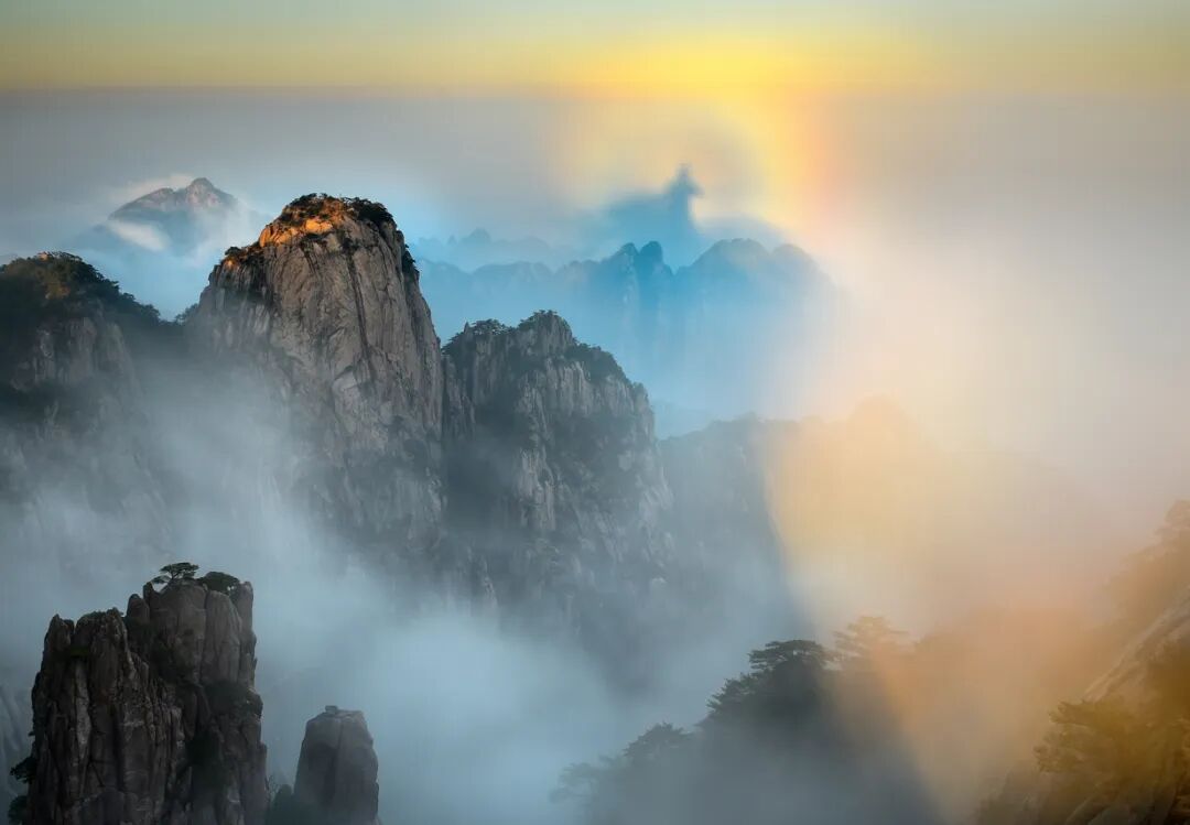 黄山云海是黄山第一奇观,似海非海,山峰云雾相幻化,意象万千,令人称奇。